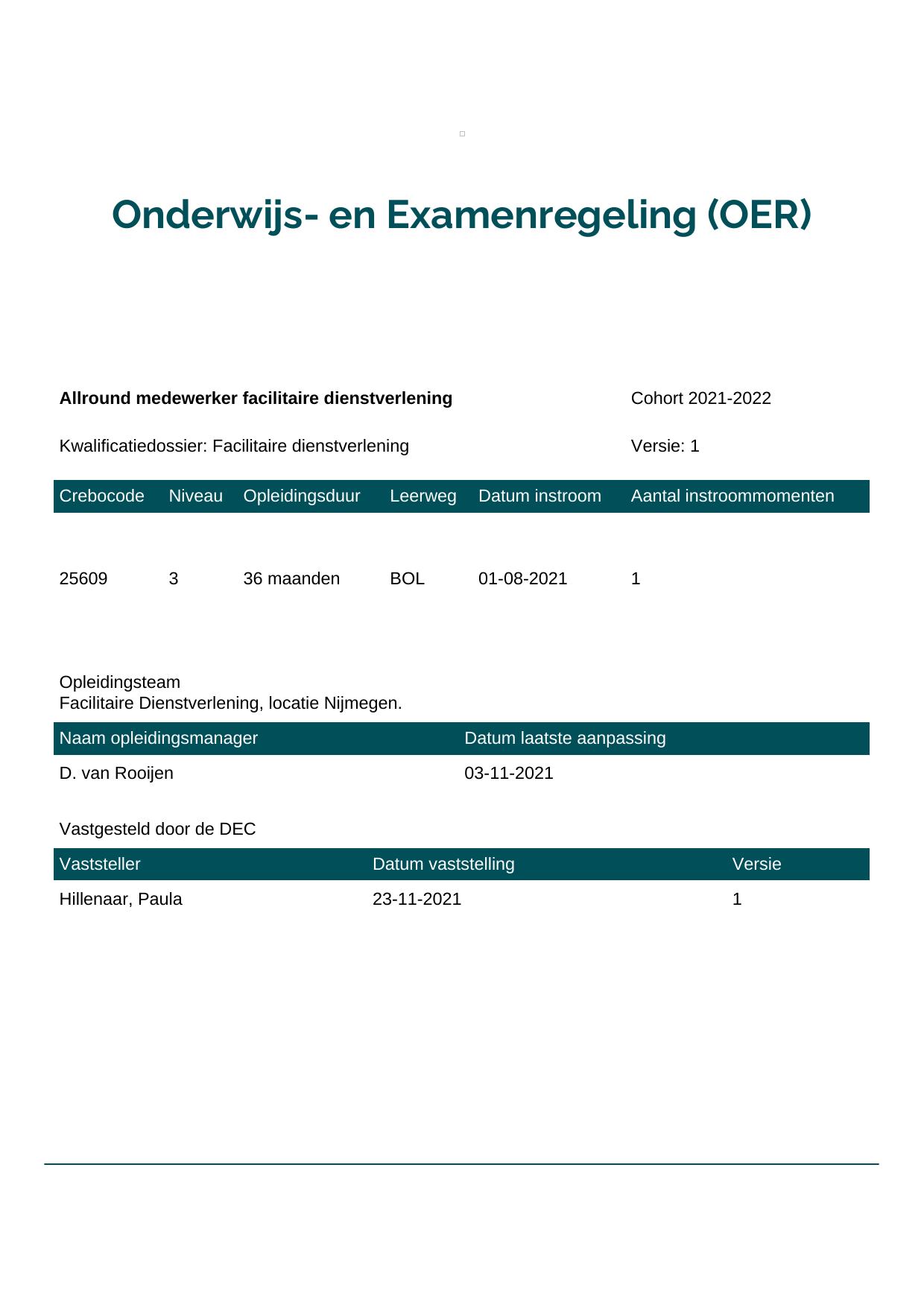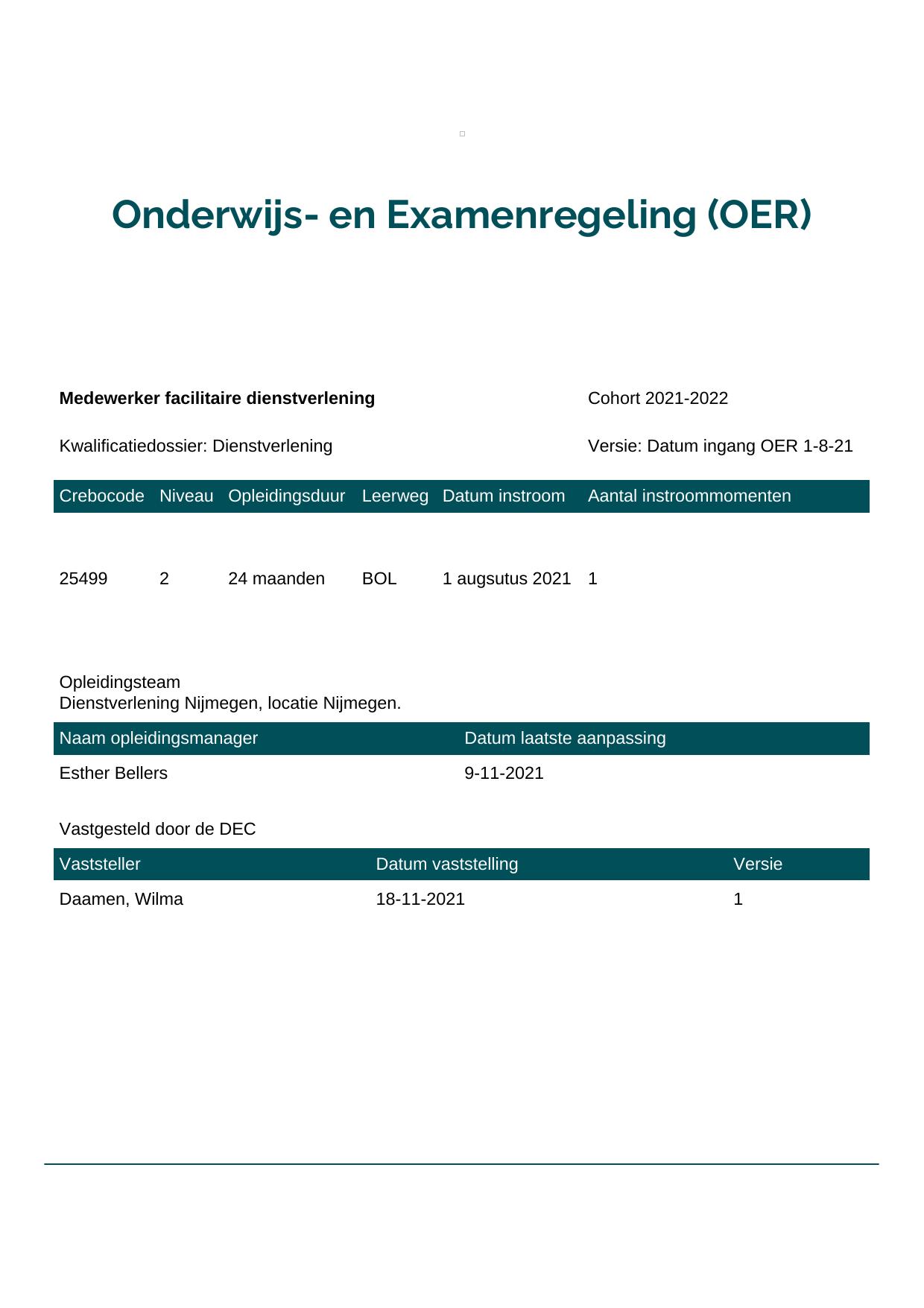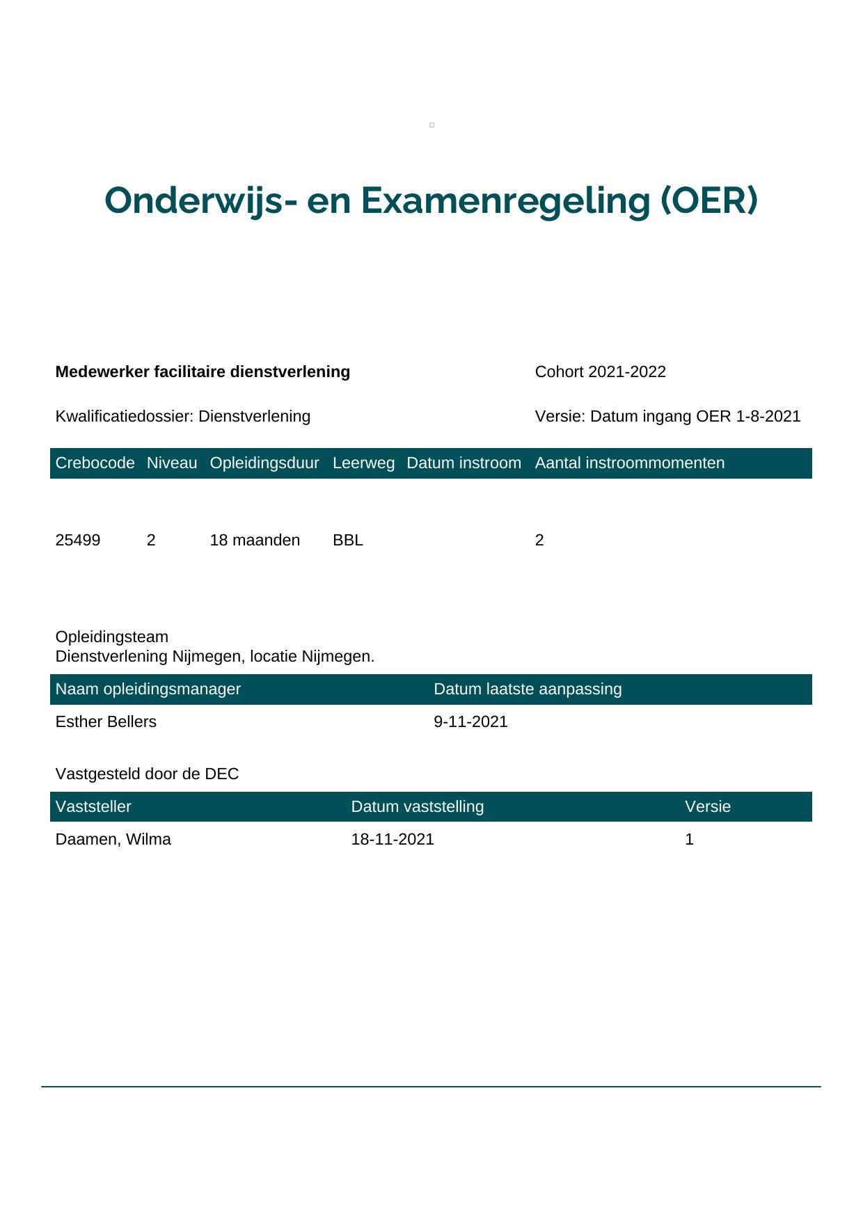 Medewerker facilitaire dienstverlening 25499BBL-NYM in cohort 2021-2022