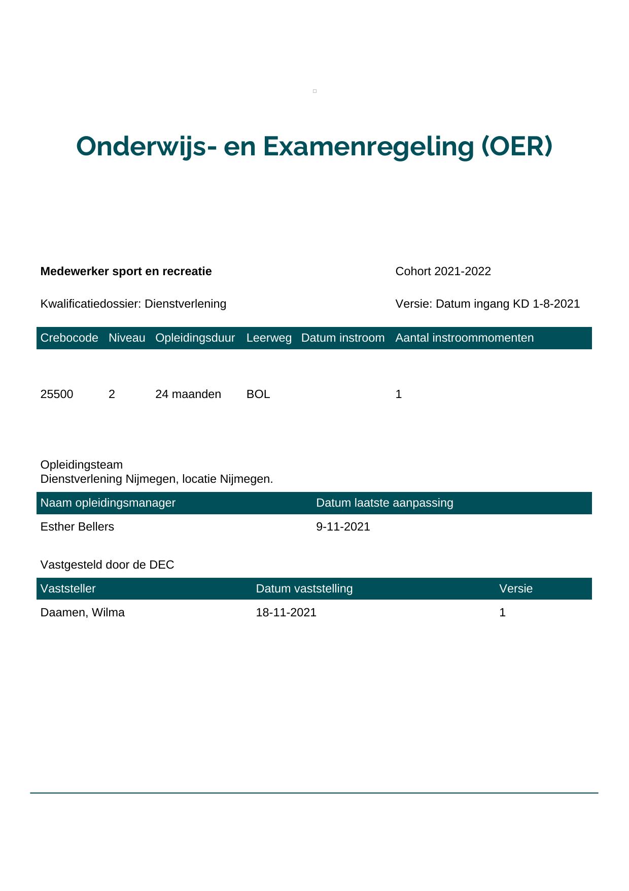 Medewerker sport en recreatie 25500BOL-NYM in cohort 2021-2022