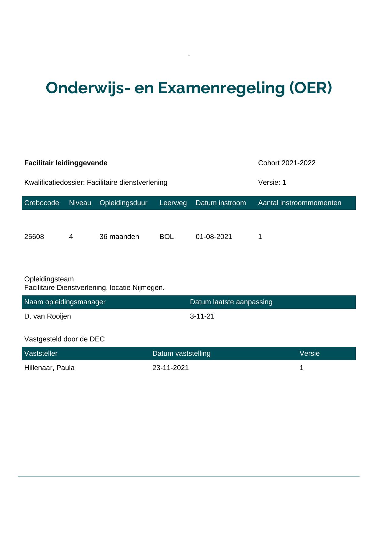 Facilitair leidinggevende 25608BOL-NYM-2J in cohort 2021-2022