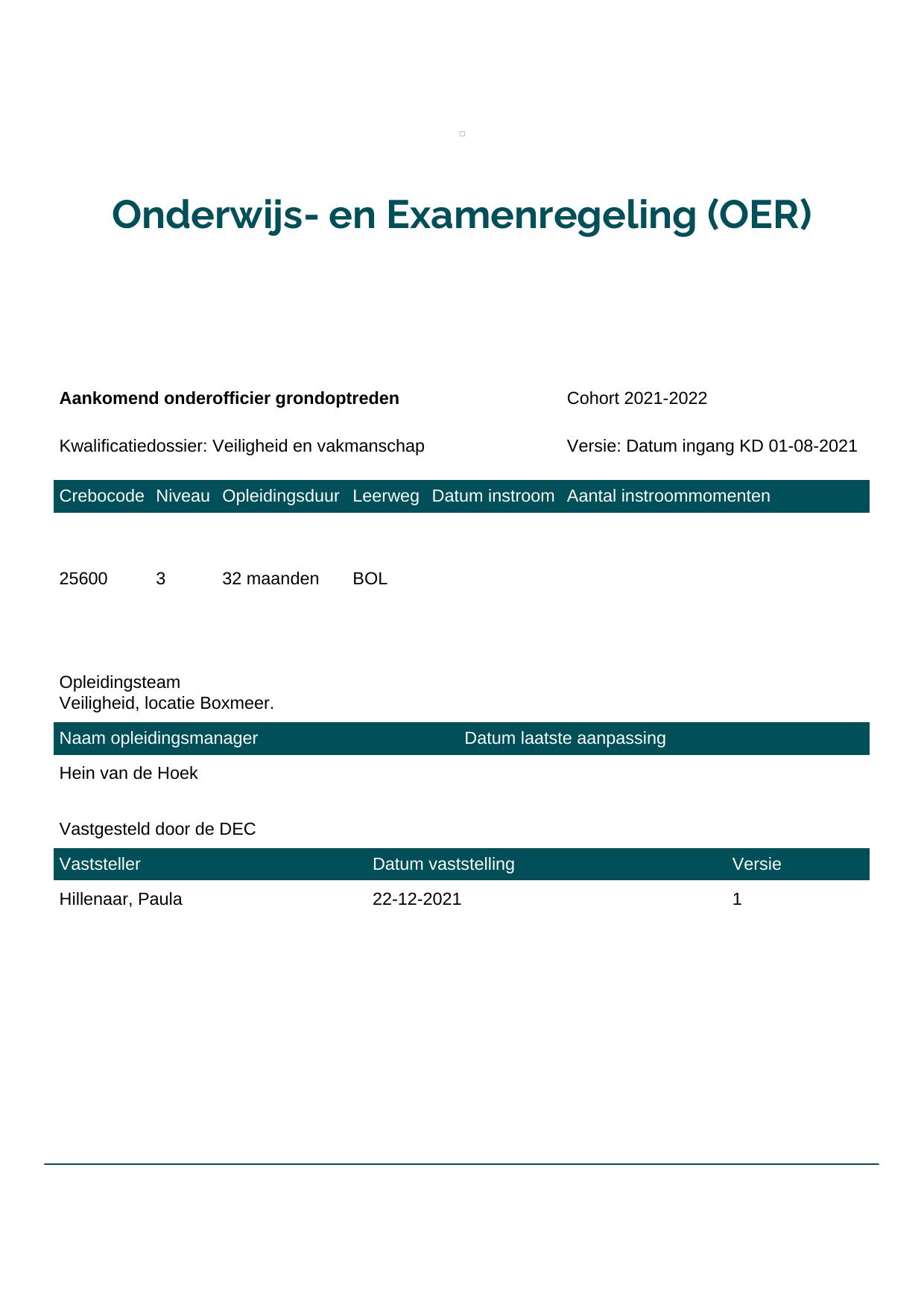 Aankomend onderofficier grondoptreden 25600BOL-BOX in cohort 2021-2022