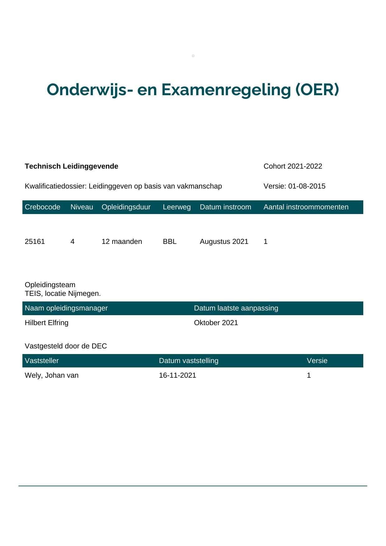 Technisch Leidinggevende 25161BBL-NYM in cohort 2021-2022
