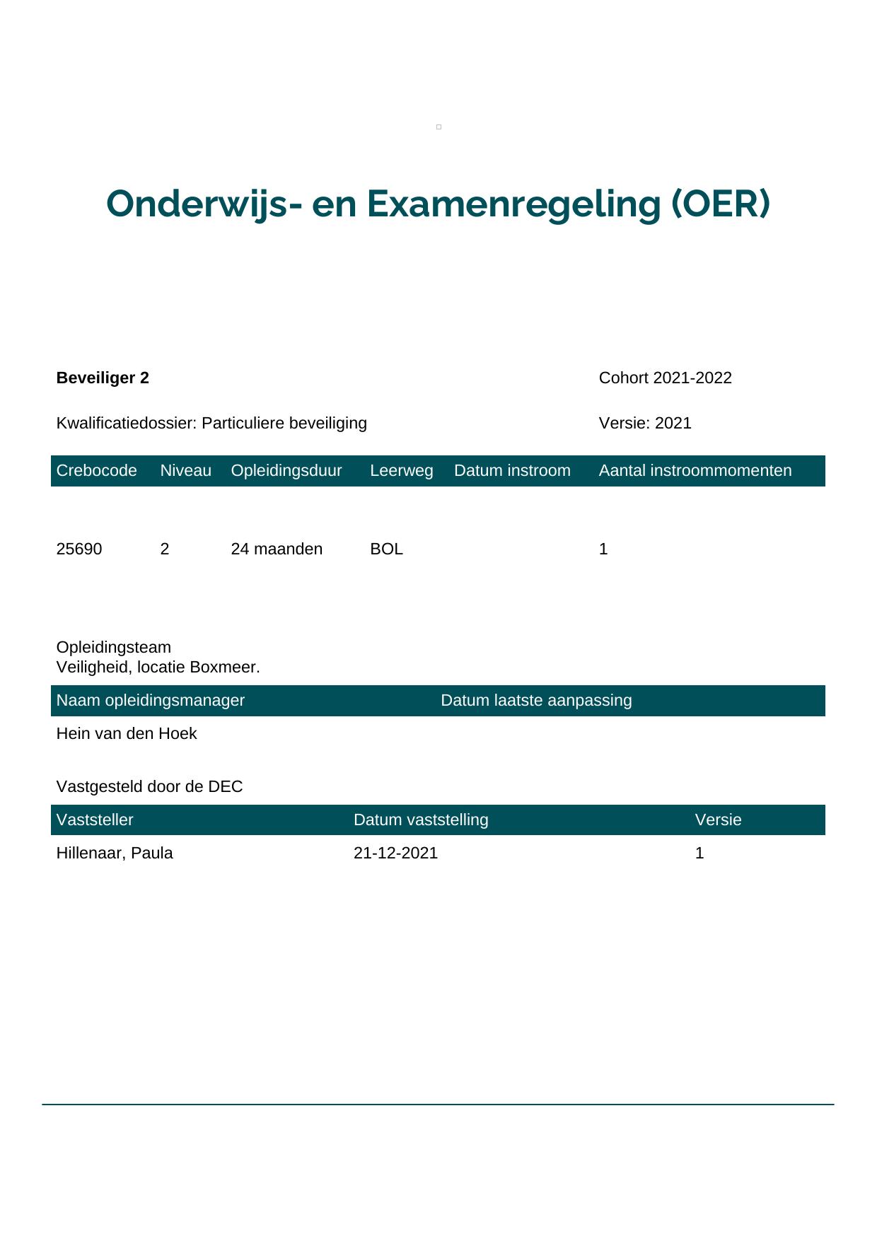 Beveiliger 2 25690BOL-BOX in cohort 2021-2022