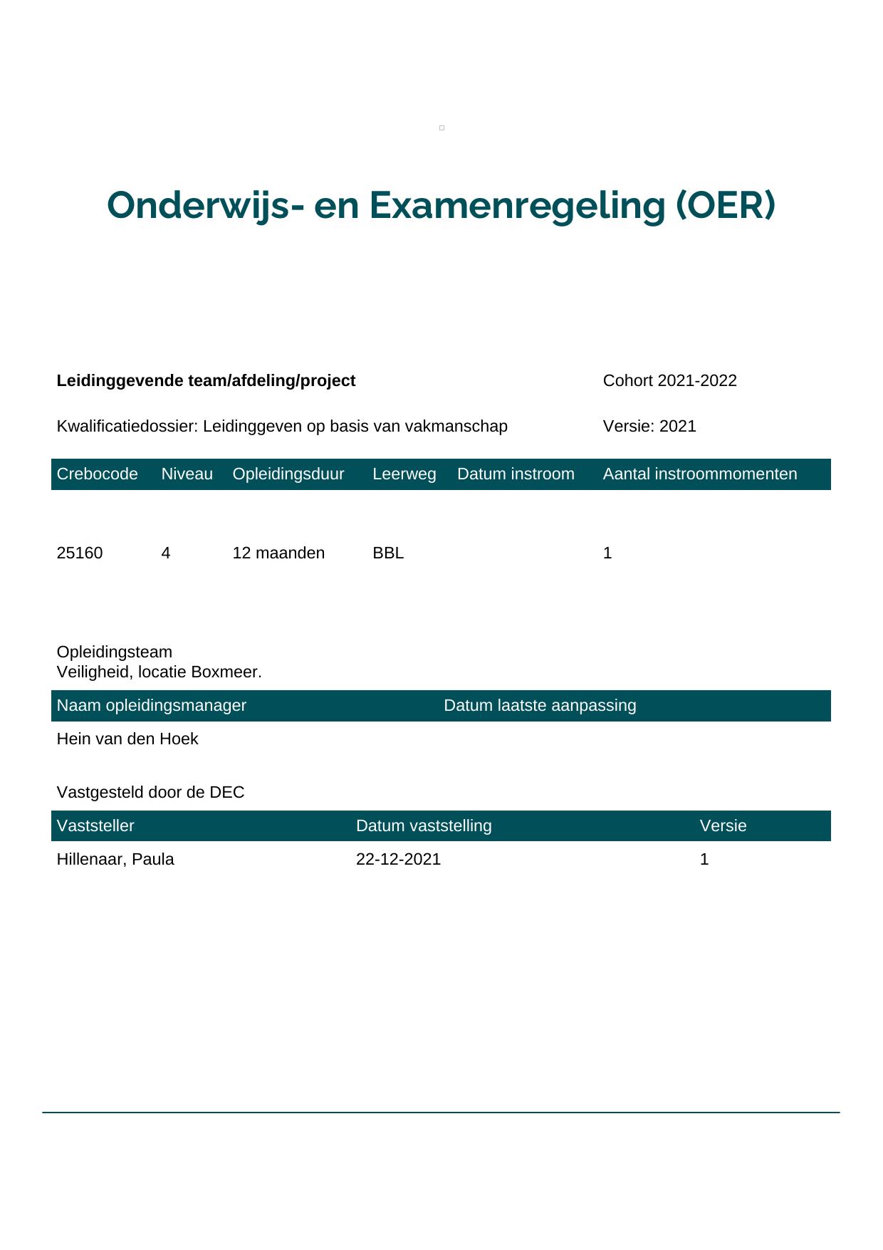 Leidinggevende team/afdeling/project 25160BBL-BOX in cohort 2021-2022