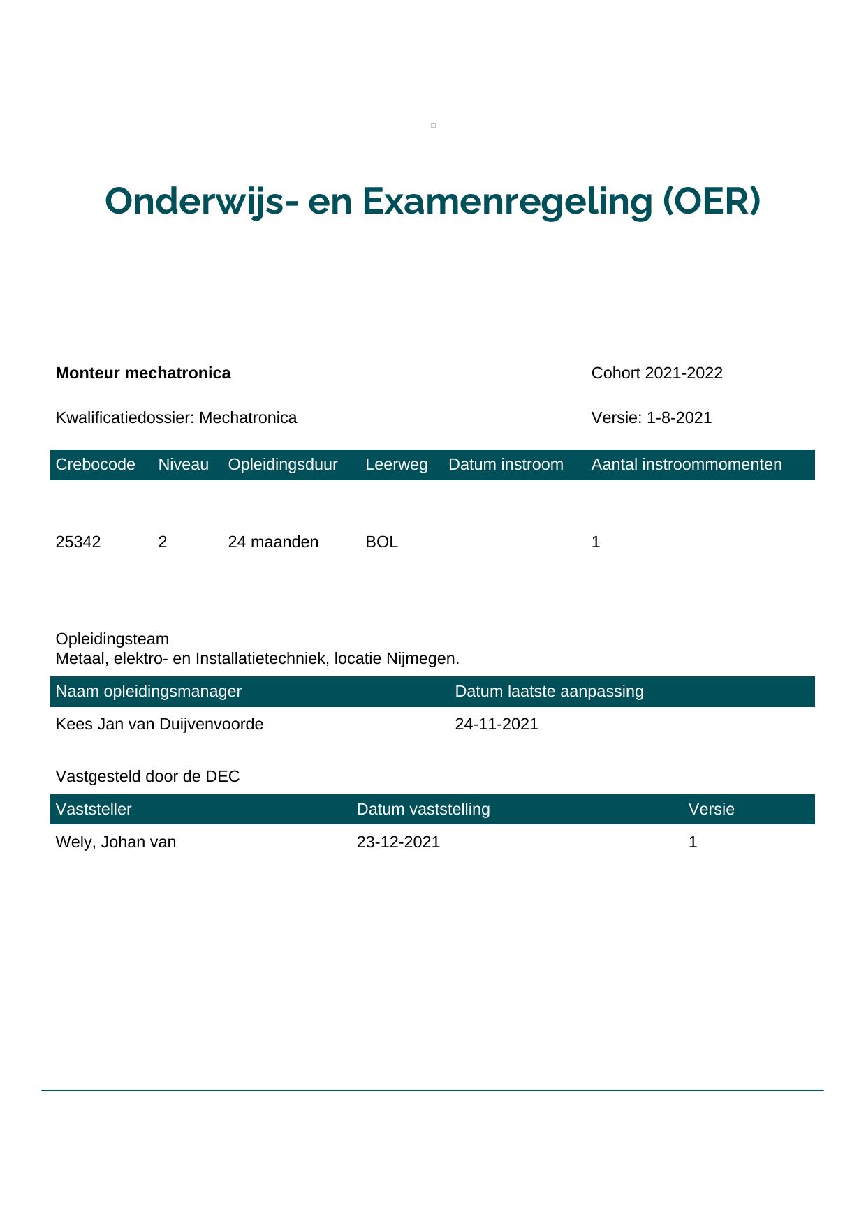 Monteur mechatronica 25342BOL-NYM in cohort 2021-2022