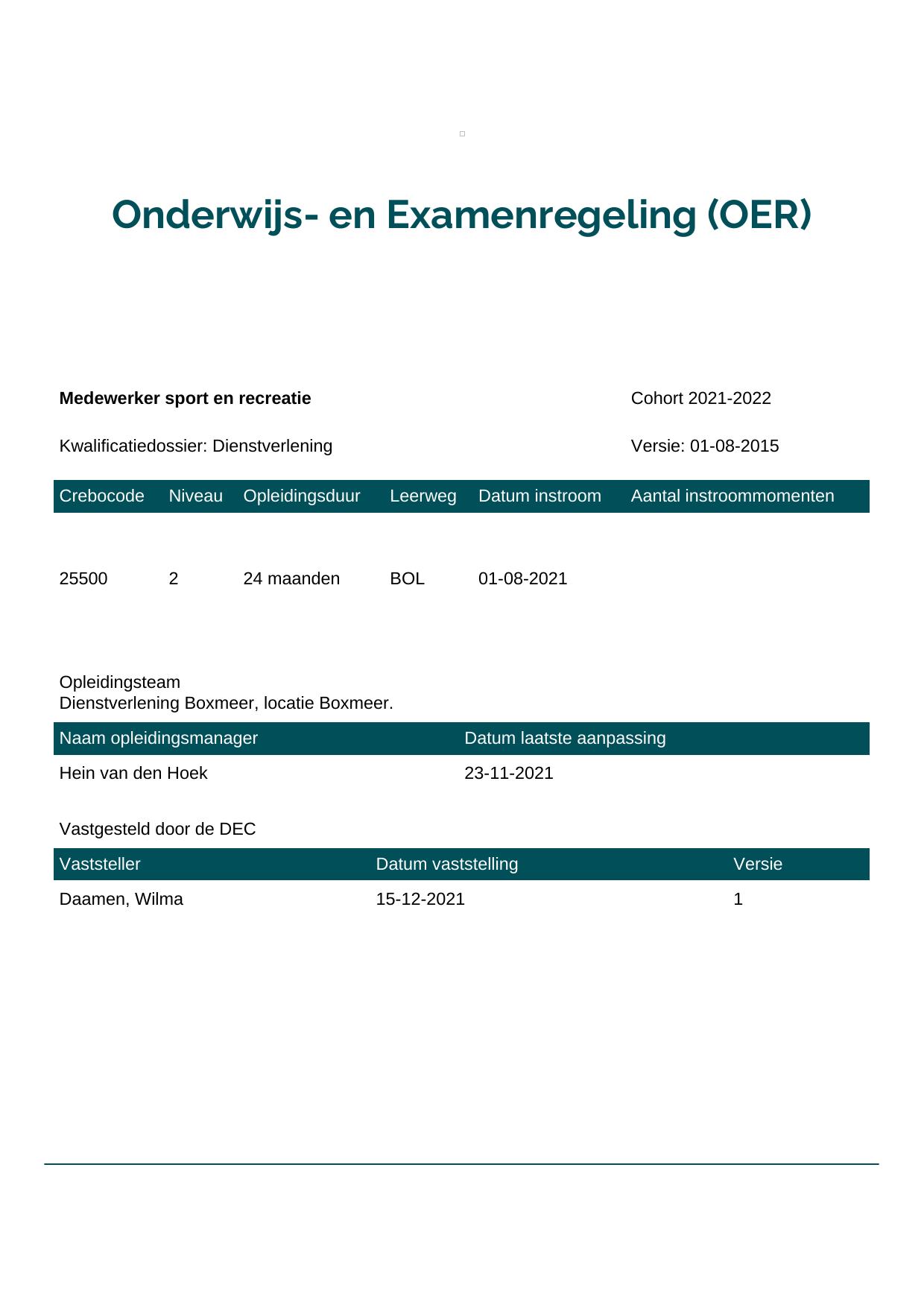 Medewerker sport en recreatie 25500BOL-BOX in cohort 2021-2022