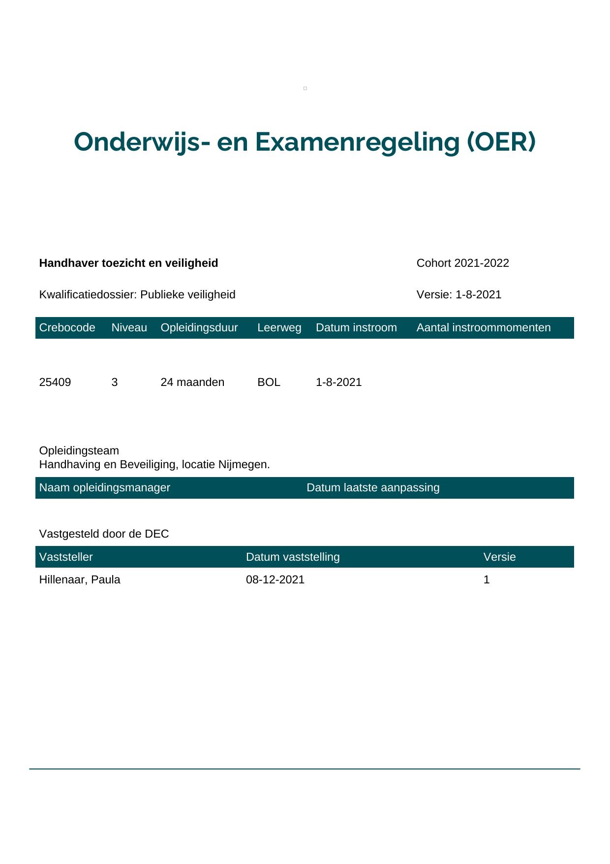 Handhaver toezicht en veiligheid 25409BOL-NYM in cohort 2021-2022