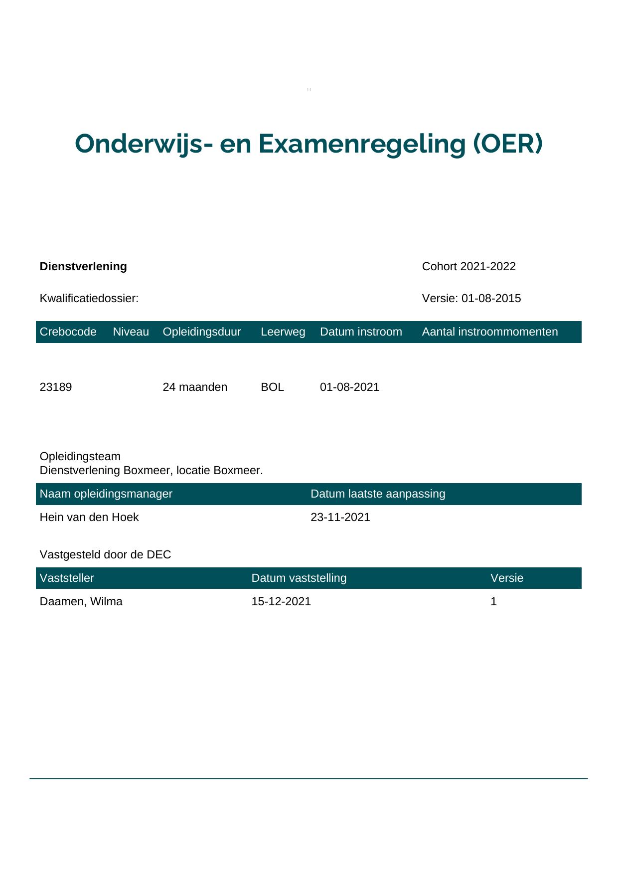 Dienstverlening 23189BOL-BOX in cohort 2021-2022