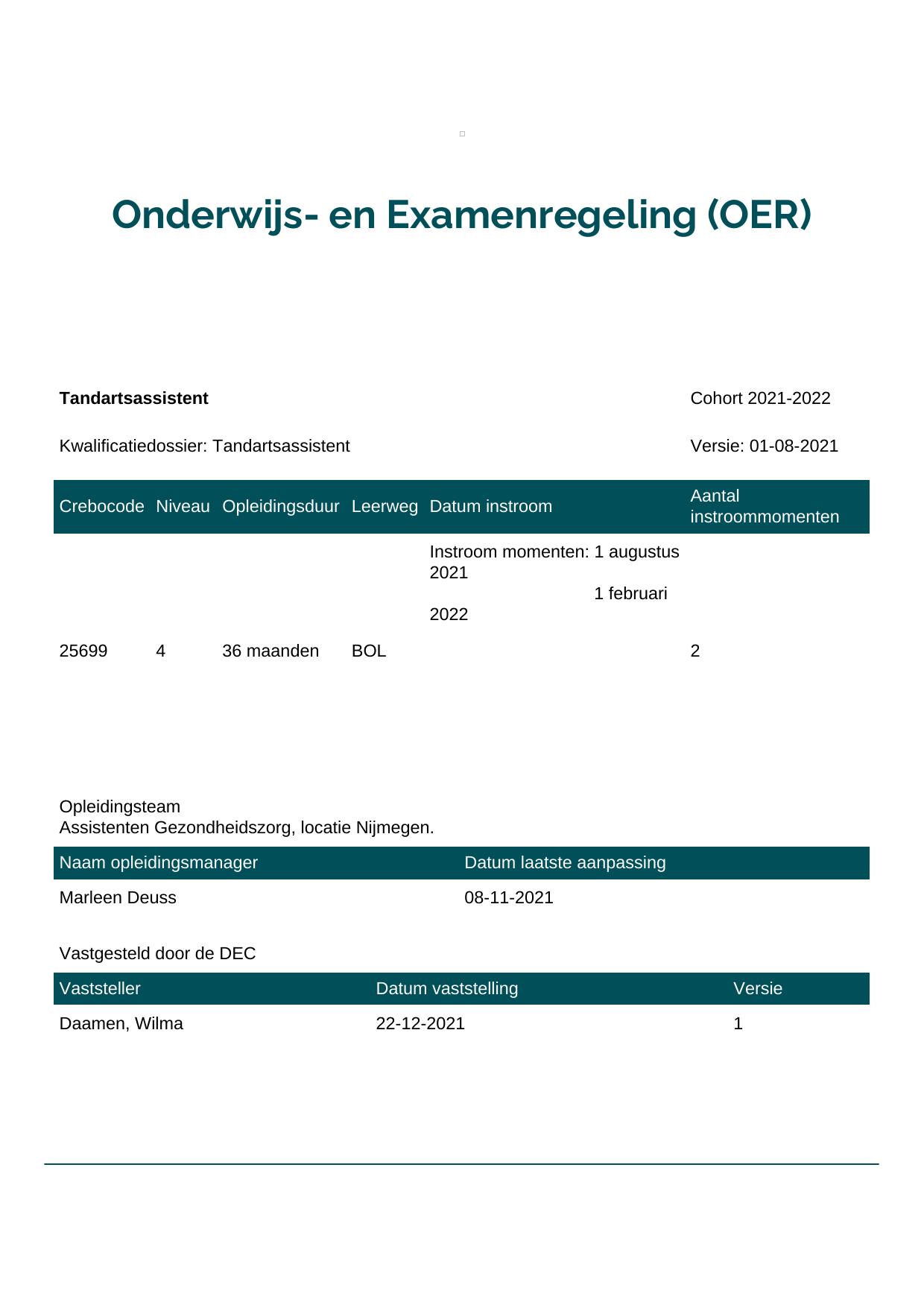 Tandartsassistent 25699BOL-NYM in cohort 2021-2022
