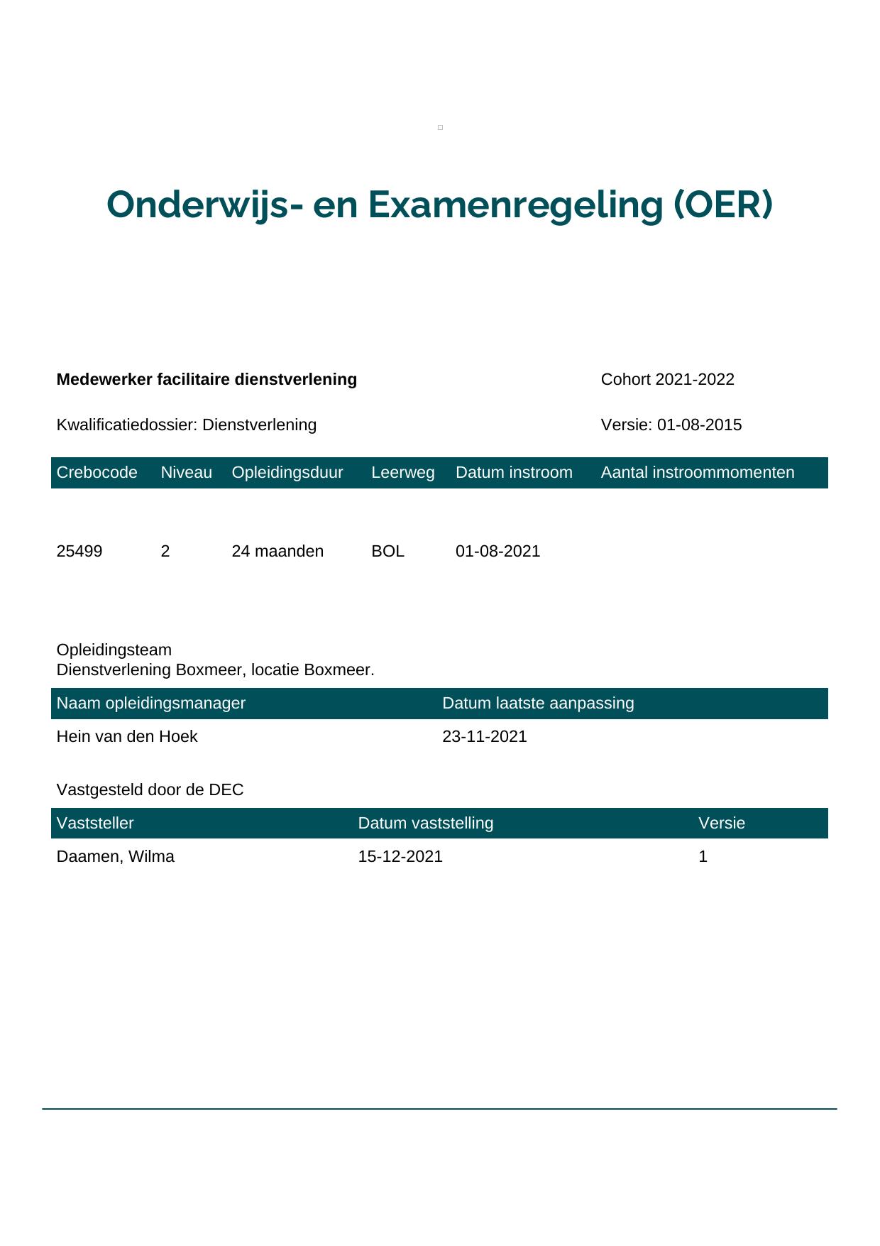 Medewerker facilitaire dienstverlening 25499BOL-BOX in cohort 2021-2022