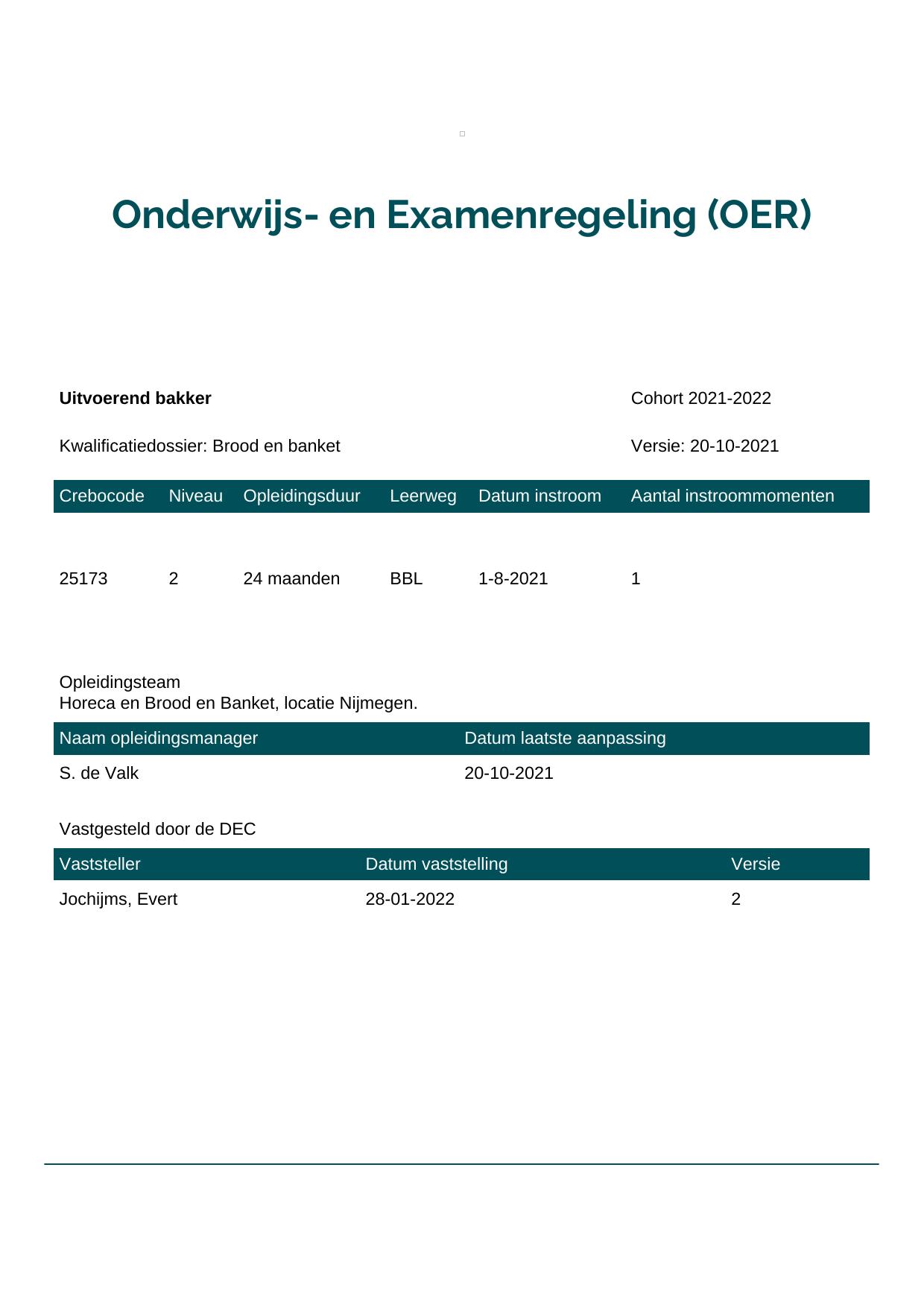 Uitvoerend bakker 25173BOL-NYM in cohort 2021-2022
