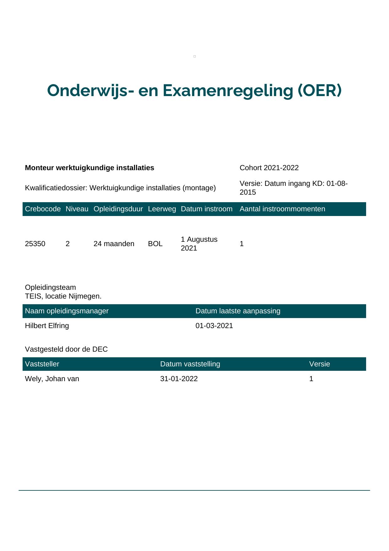Monteur werktuigkundige installaties 25350BOL-NYM in cohort 2021-2022