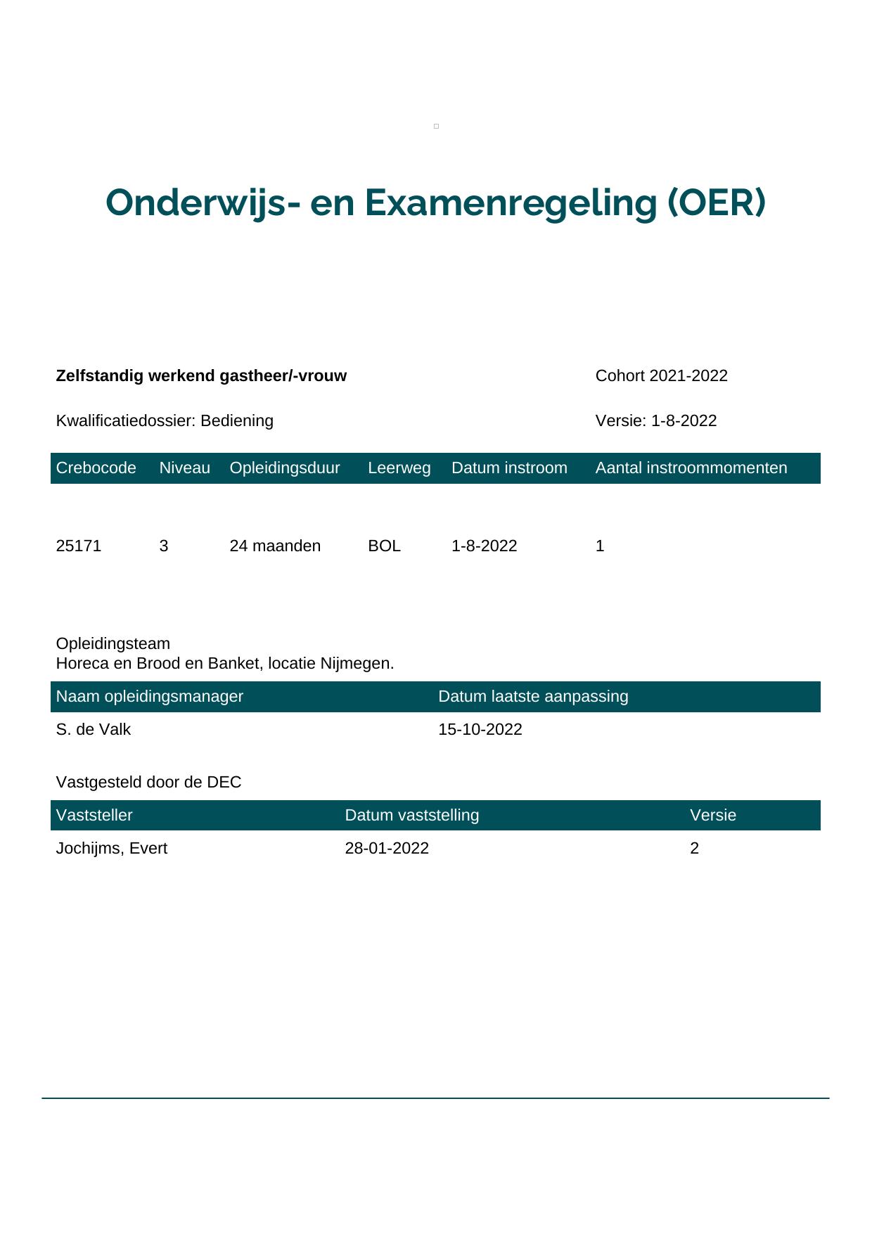 Zelfstandig werkend gastheer/-vrouw 25171BOL-NYM in cohort 2021-2022