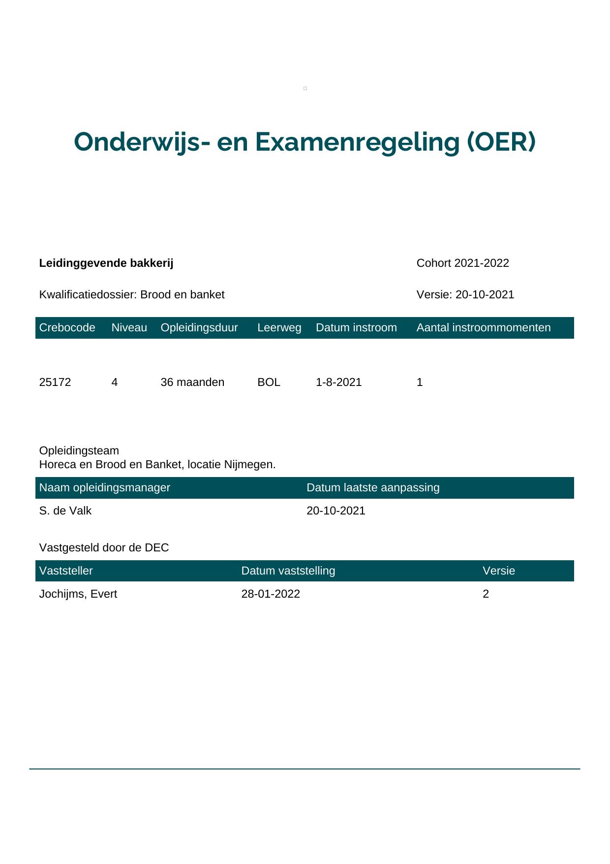 Leidinggevende bakkerij 25172BOL-NYM in cohort 2021-2022