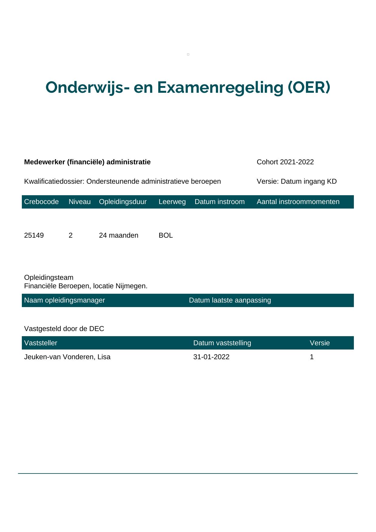Medewerker (financiële) administratie 25149BOL-NYM in cohort 2021-2022