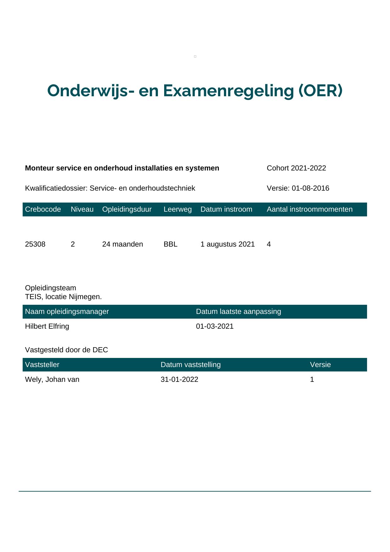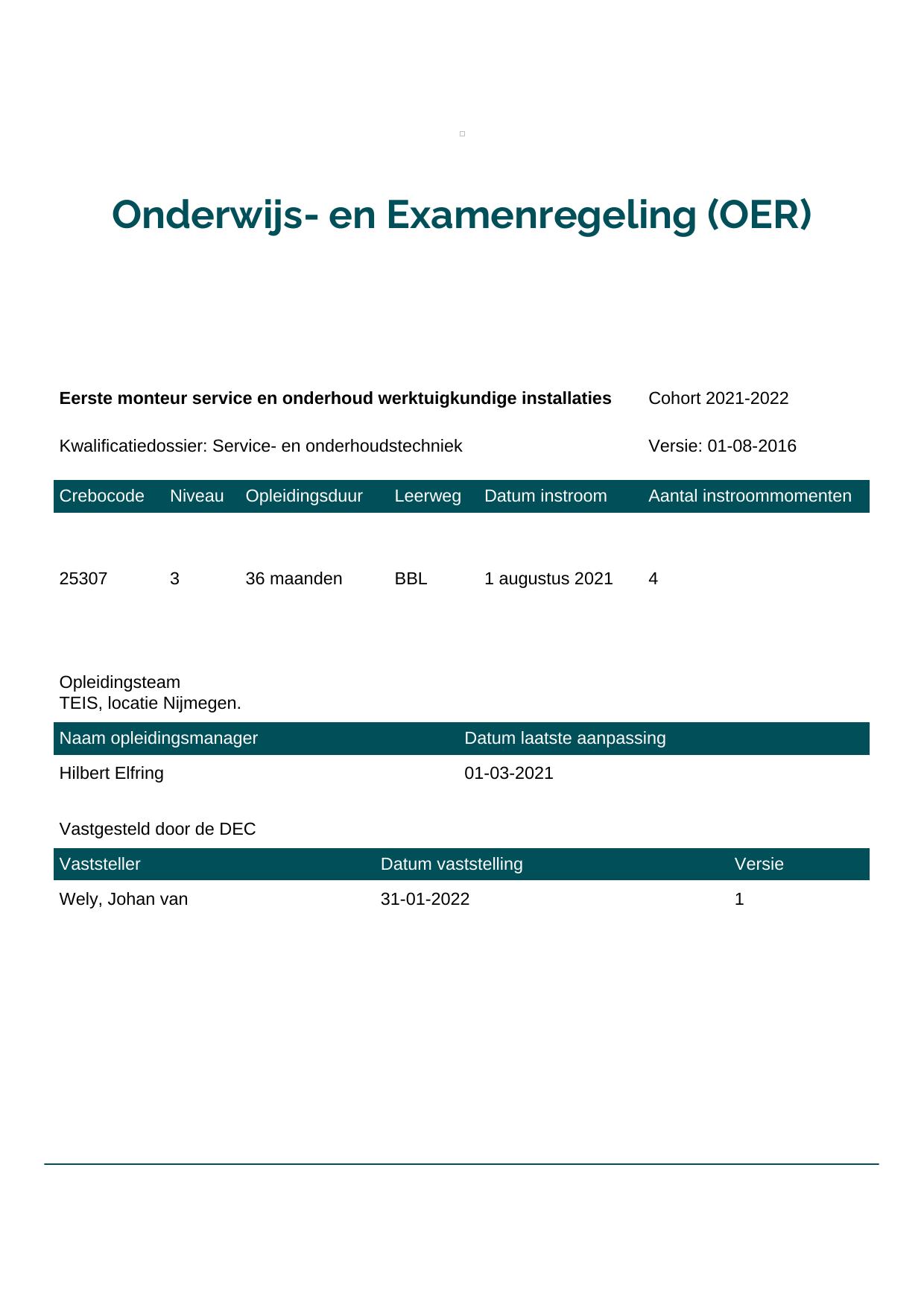 Monteur service en onderhoud installaties en systemen 25308BBL-NYM in cohort 2021-2022