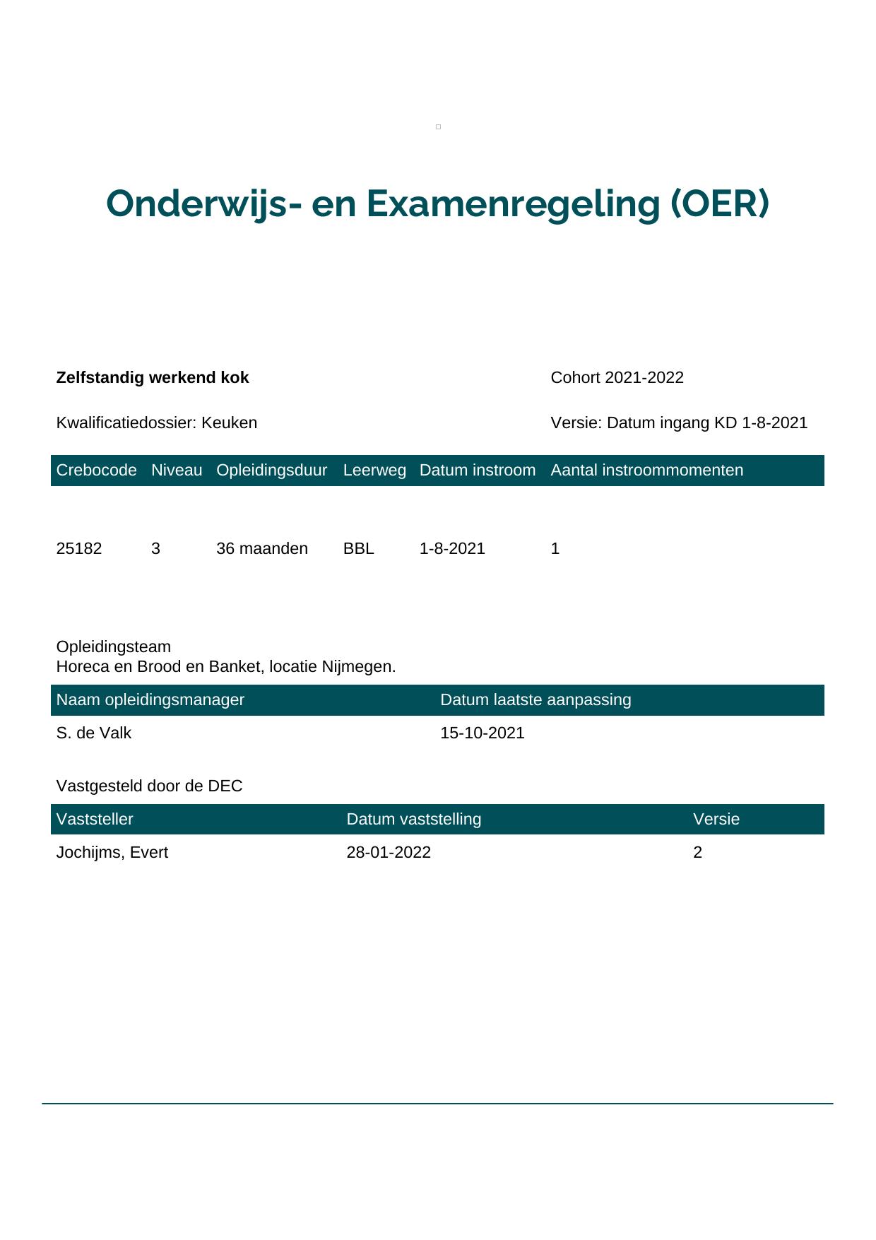 Zelfstandig werkend kok 25182BBL-NYM in cohort 2021-2022
