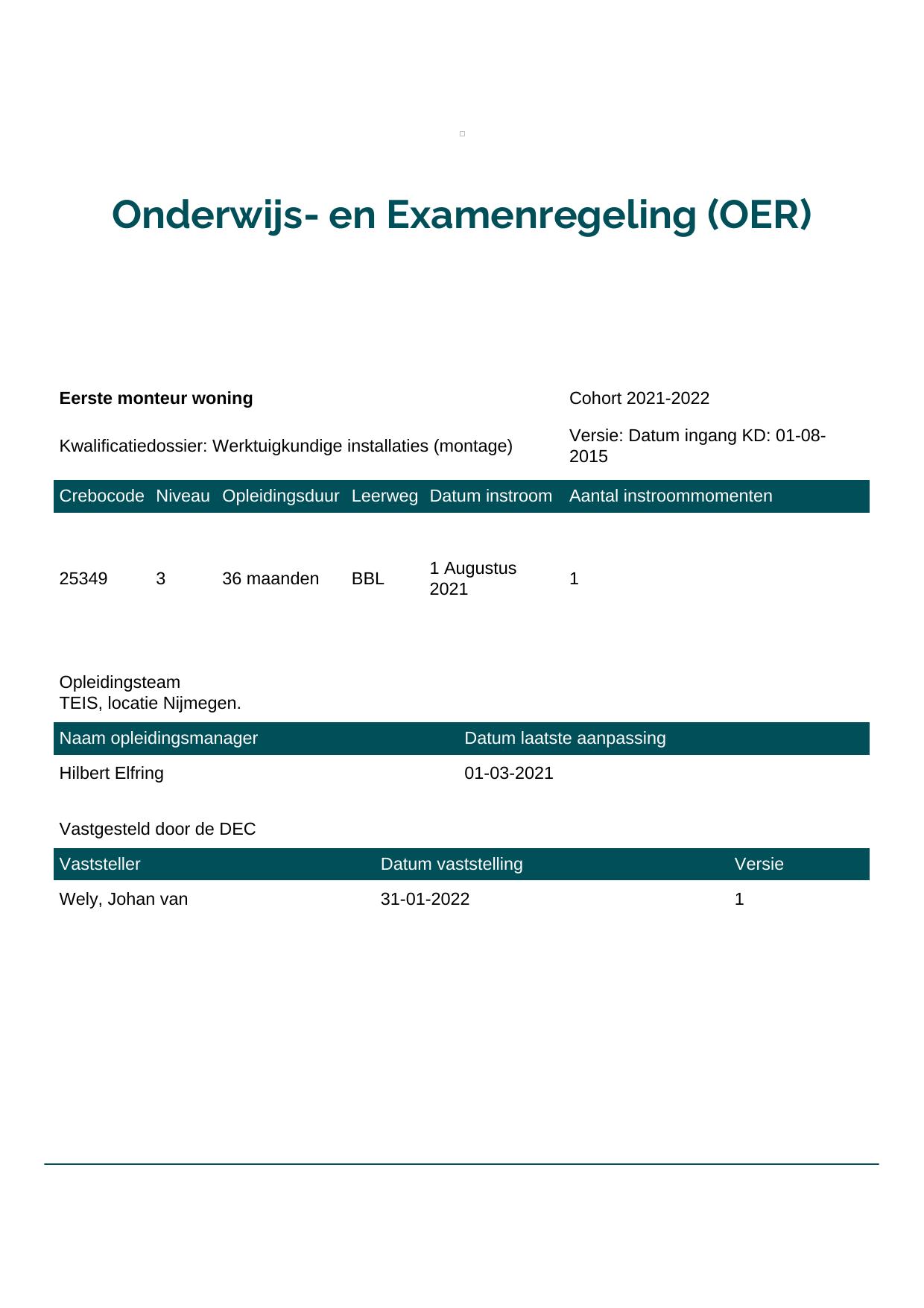 Eerste monteur woning 25349BOL-NYM in cohort 2021-2022