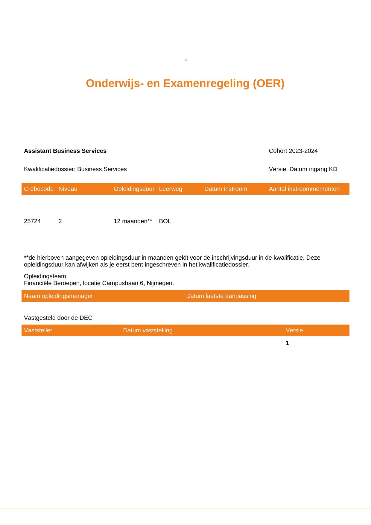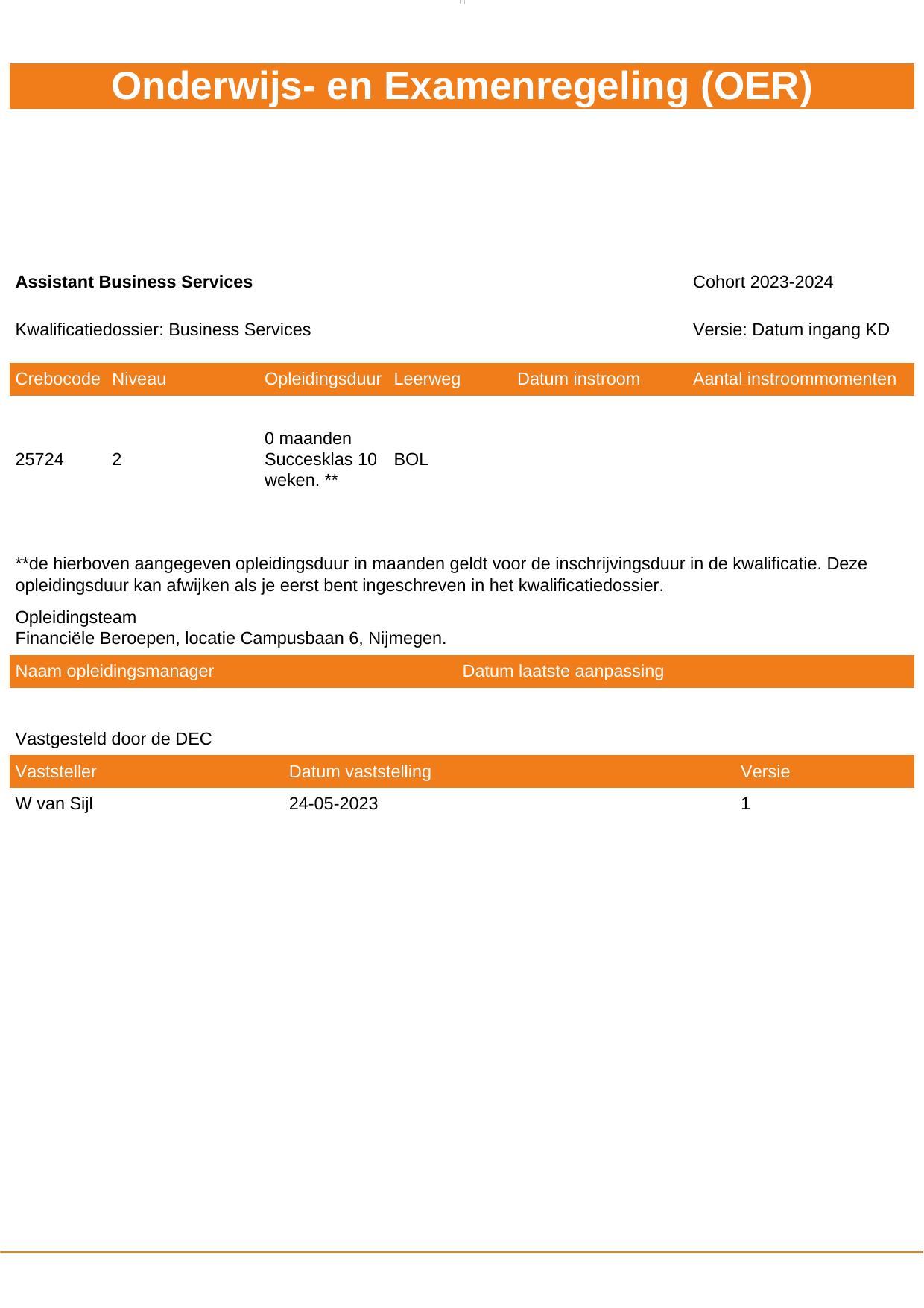 Assistant Business Services 25724BOL-NYM-KORT in cohort 2023-2024