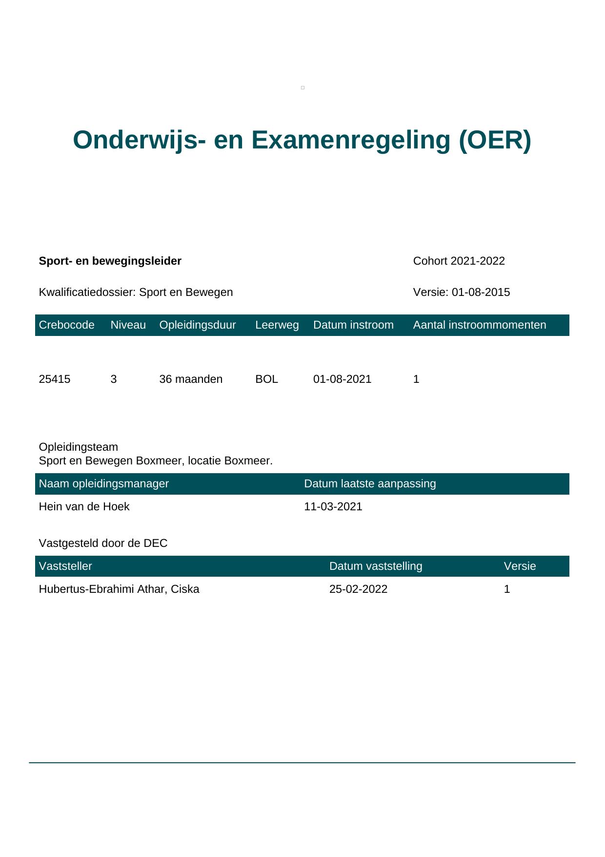 Sport- en bewegingsleider 25415BOL-BOX in cohort 2021-2022