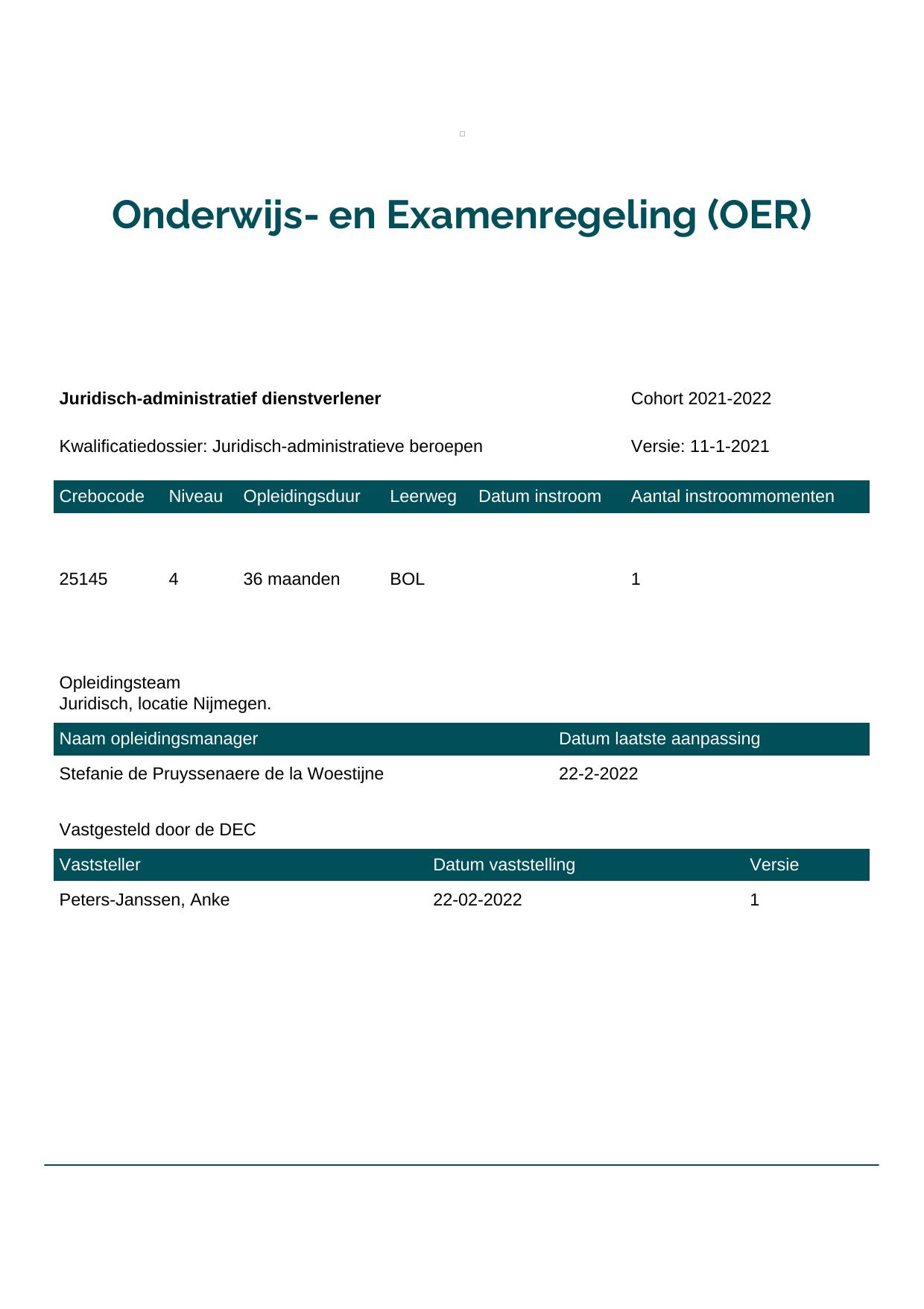 Juridisch-administratief dienstverlener 25145BOL-NYM in cohort 2021-2022