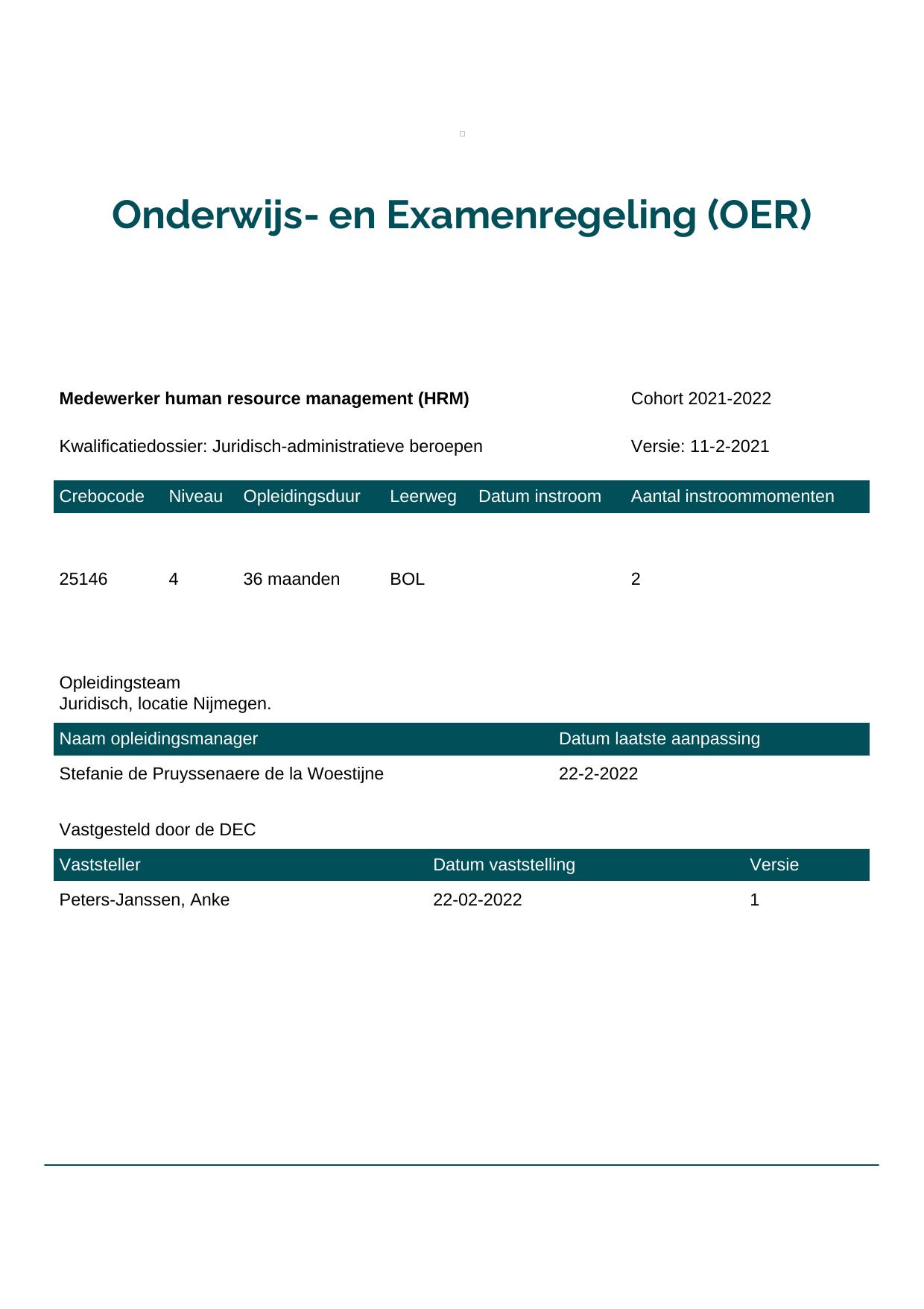 Medewerker human resource management (HRM) 25146BOL-NYM in cohort 2021-2022